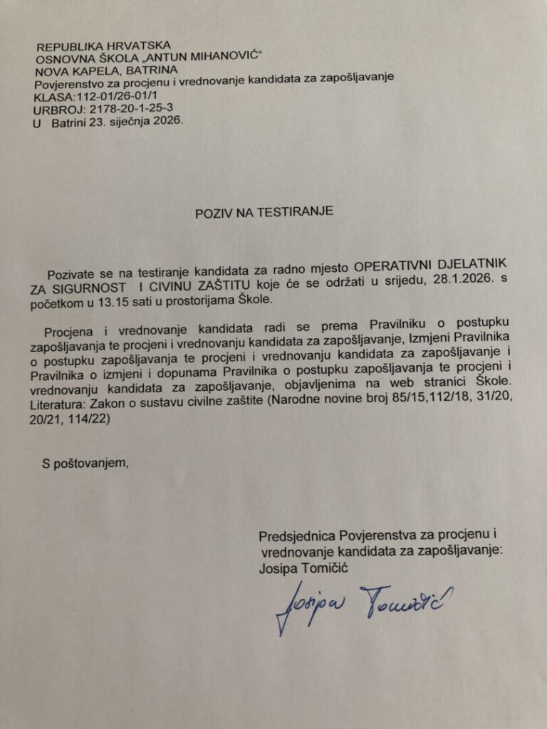 Djelatnici Područne službe civilne zaštite Slavonski Brod proveli su 8. i 9. siječnja 2026. godine edukaciju nastavnika i ostalih djelatnika u tri osnovne škole: OŠ „Matija Gubec“ Cernik, OŠ „Antun Mihanović“ Nova Kapela, Batrina i OŠ „Đuro Pilar“ Slavonski...